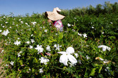 La récolte du jasmin demande de délicates attentions. La cueillette a lieu d'août à octobre et se fait au lever du jour. Les cueilleuses doivent récolter une à une les fleurs. Il faut compter environ deux heures pour ramasser un kilo de fleurs de jasmin, c'est à dire, 8000 fleurs environ ! Des fleurs qui devront être livrées le plus tôt possible aux usines pour être traitées. On obtient alors l'absolue de jasmin qui servira aux parfumeurs. Il faut compter huit kilos de fleurs pour obtenir un litre d'absolue de jasmin !